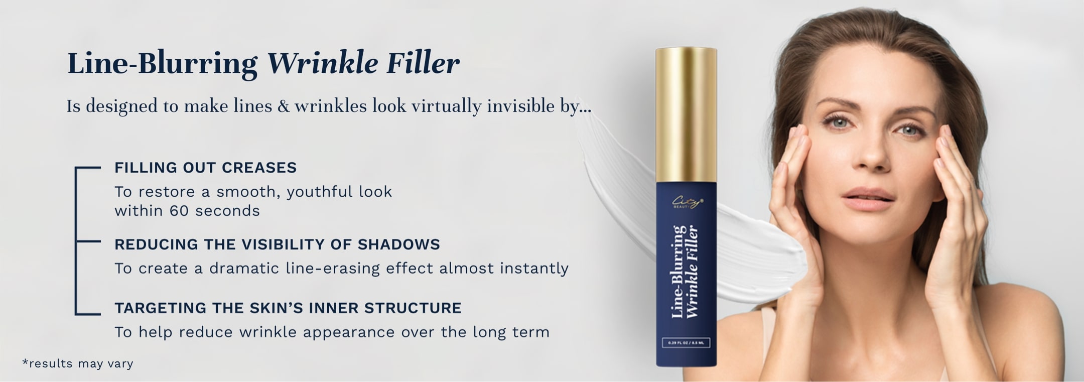 is an intensive spot treatment that fills in creases and instantly blurs the look of wrinkles. Over time, the active ingredients support smoother, younger-looking skin.